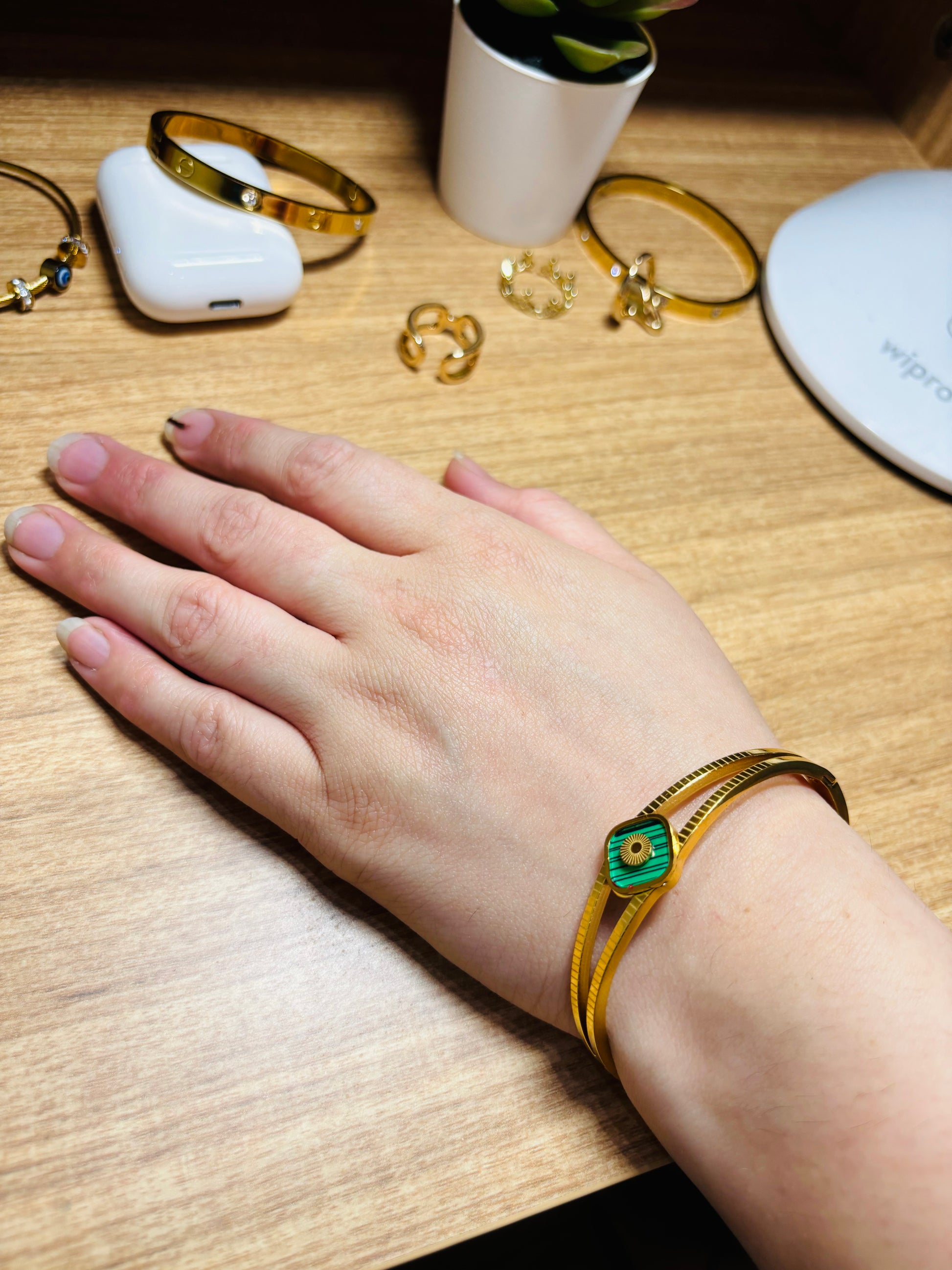 💚 Elevate your style with this Emerald Enamel Bracelet – a fusion of luxury, tradition, and modern aesthetics.